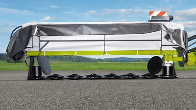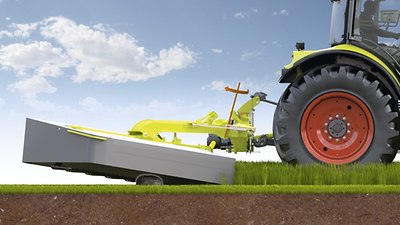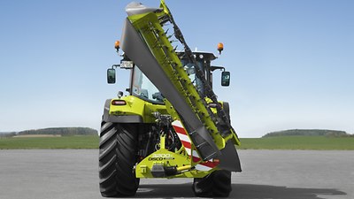 Grâce à son système de repliage télescopique inédit, la faucheuse se replie à 120° en position de transport, comme les autres modèles CONTOUR. De plus, grâce à un vérin combiné à la sécurité anticollision non-stop hydraulique, la DISCO 4400 CONTOUR est basculée vers l'arrière. Parallèlement, la toile de protection (option) est repliée automatiquement de 180°.