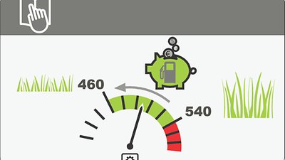 La démultiplication opérée dans la chaîne cinématique permet de ramener le régime de 540 à 460 tr/min en cas de fourrages courts afin de réduire la consommation de gazole pour une qualité de fauche identique.