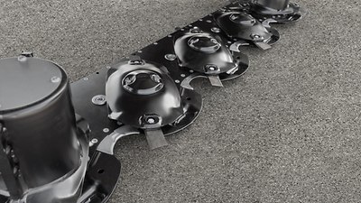 Le petit ressort assure en outre la suspension de l'entraînement du lamier. Notre suspension unique du centre de gravité fait désormais profiter les modèles à suspension latérale des avantages d'une suspension centrale.