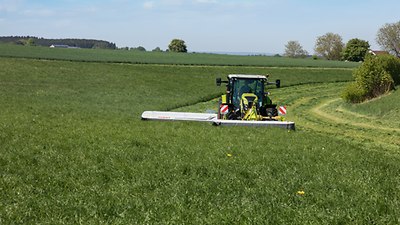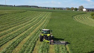 Pour l'exploitation laitière Groiner Milch KG et son cheptel de 500 bêtes en Rhénanie du Nord-Westphalie, la qualité du fourrage est essentielle. « Certaines parcelles sont très accidentées et pleines de trous », indique Felix Streuff, l'un des propriétaires. Quand les conditions le permettent, il fauche au régime de prise de force réduit (850 tr/min).