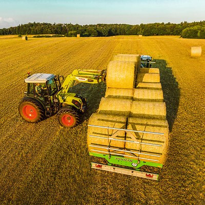 La stabilité de l'ensemble tracteur-outil et la sécurité sont optimales pour les travaux de transport et de traction. Le tracteur combine un poids à vide de 4,1 t à une répartition optimale des masses et à un empattement long. Lors de la récolte fourragère ou de l'épandage phytosanitaire, la garde au sol élevée permet de franchir les andains et de travailler dans les cultures même à un stade avancé.